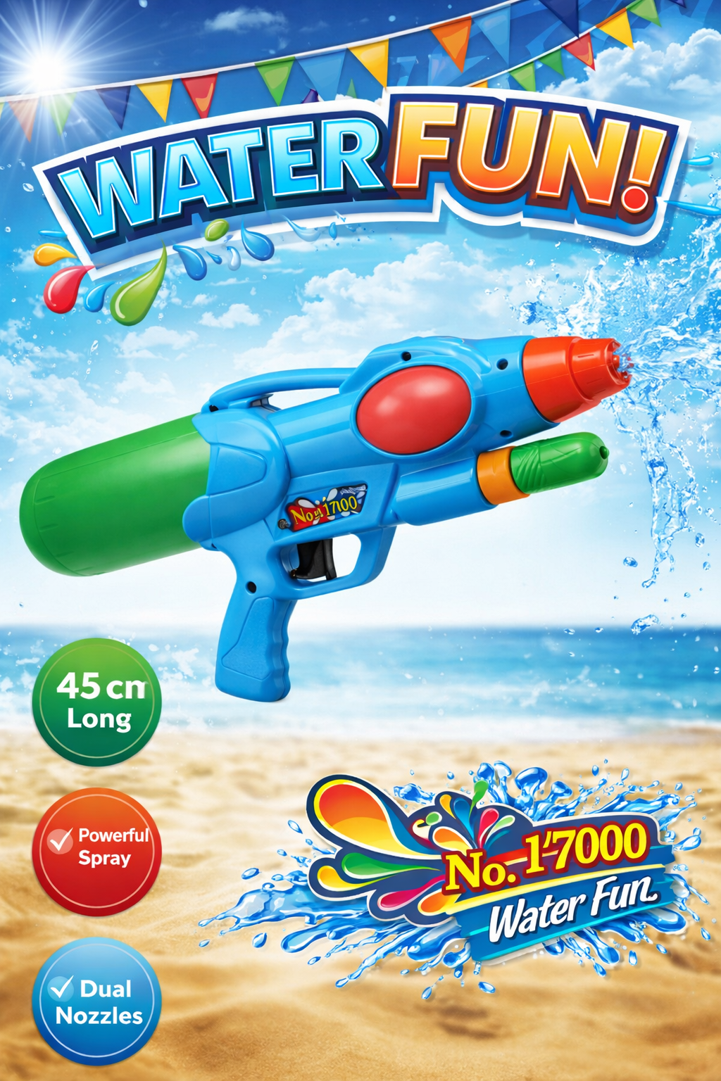 Enjoy this Holi with the No. 17000 High Pressure Water Gun (45cm). Big size, powerful long-range spray, and attractive multicolor design – perfect for kids and adults for full-on Holi masti! 💦🎉