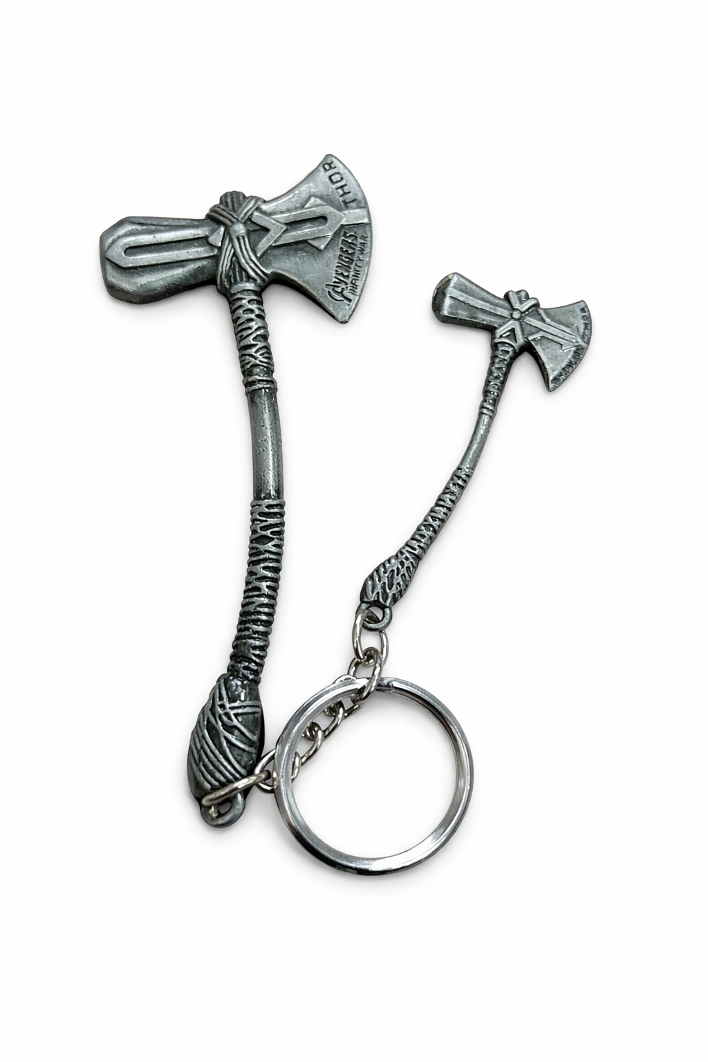 - Add a bold and powerful touch to your everyday essentials with this Thunder Axe Metal Keychain. Designed in a Viking battle axe style, this premium keyring features detailed metal craftsmanship with a stylish silver antique finish.